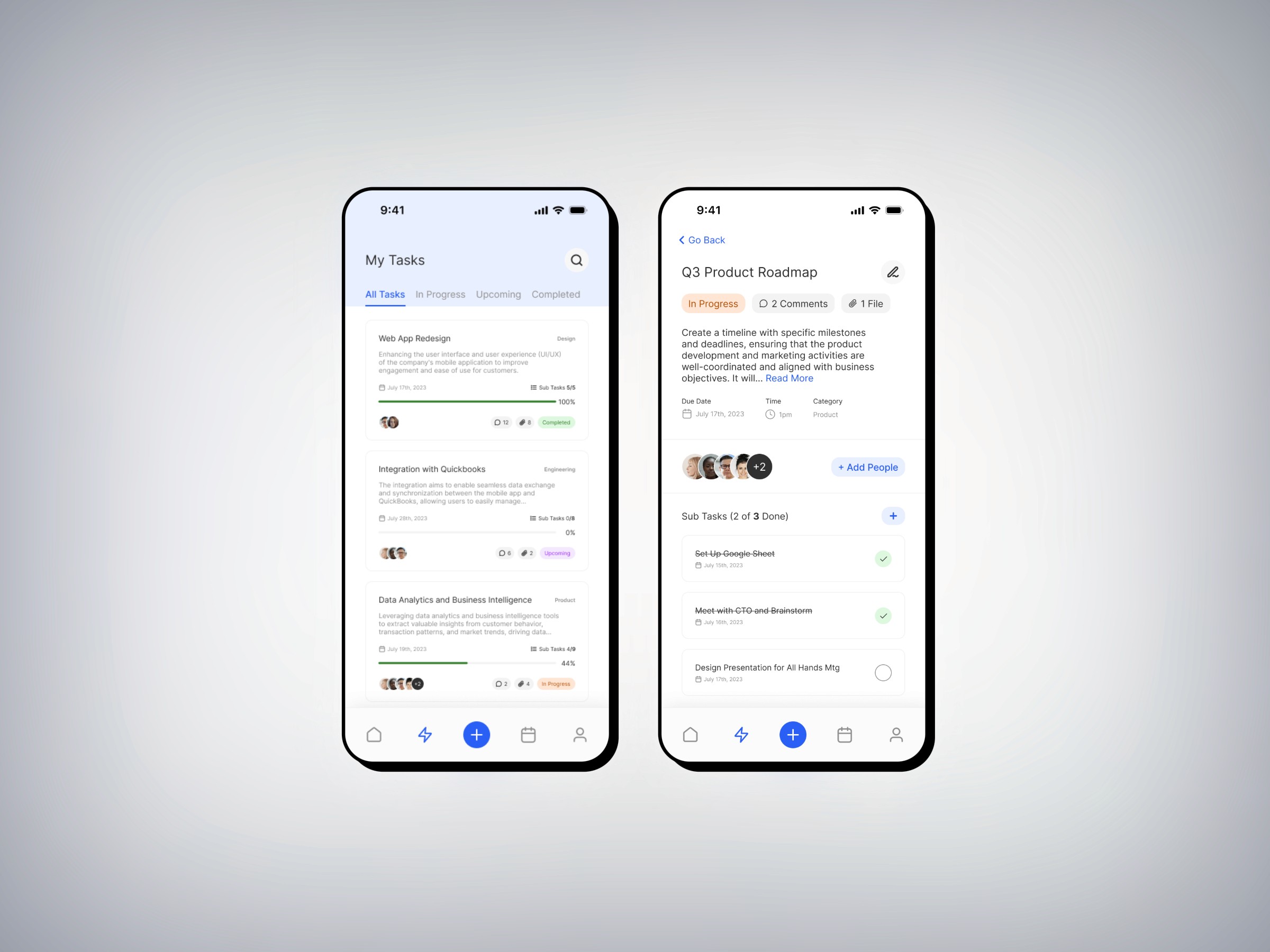 TaskManager is an AI powered productivity platform built to help individuals and teams stay aligned, organized, and focused on what matters most. As the design lead working directly with the founders, I shaped the product vision, refined the core workflows, and designed the full app experience across mobile and desktop. The goal was to simplify the complexity of daily work and give users a smarter, more intuitive way to plan, track, and complete tasks. The challenge was to balance intelligence and usability without overwhelming the user. The result is a clean and modern interface that feels familiar at first glance but reveals deeper value as the user interacts with it. — The Problem Task planning tools often fall into two extremes. They are either too simple and offer little structure or too rigid and create more work than they save. Users want clarity, but they also want flexibility and intelligence. The existing tools did not adapt to different working styles and made collaboration harder instead of easier. Teams also needed a better way to align around priorities, dependencies, and ownership without endless back and forth. — The Direction Working closely with the founders, I translated a broad product vision into a clear set of priorities: • Make the app easy to adopt and effortless to use • Introduce AI in a way that feels supportive, not intrusive • Create a visual system that helps users focus • Design a structure that works for individuals and teams We explored how the product could automate repetitive actions, highlight important changes, and help users stay ahead of deadlines. — Design I redesigned the experience around clarity and flow. Every screen was shaped to reduce friction and guide users into action. Key parts of the solution included: • A clean task view with smart grouping and prioritization • Contextual AI suggestions that feel natural within the workflow • A redesigned task creation flow that helps users stay organized • Clear progress indicators and visibility across teams • A consistent UI system that works across mobile and desktop The result is an interface that feels simple but scales to complex needs without added effort. I collaborated weekly with engineering to refine interactions, validate small details, and support smooth implementation. Our design system evolved quickly to maintain cohesiveness and speed. — Impact The redesigned experience helped teams work more effectively, reduced time spent on repetitive manual steps, and improved overall adoption. Users felt more in control of their day and more confident navigating their priorities. For founders, the product gained clarity, structure, and the strong foundation needed to scale. TaskManager became more than a to do list. It became a system that supports focus, collaboration, and meaningful progress.